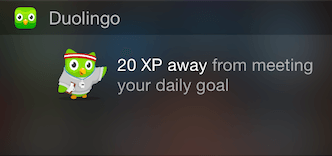 And here’s a message from Duolingo motivating the user to achieve their daily language learning goal: