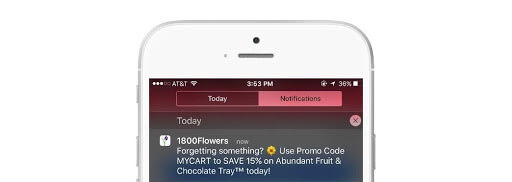 Inform the users about the brand’s special offers and discounts, e.g. holiday or seasonal discounts, with push notifications. For example, here’s an example of a personalized offer from 1800Flowers: