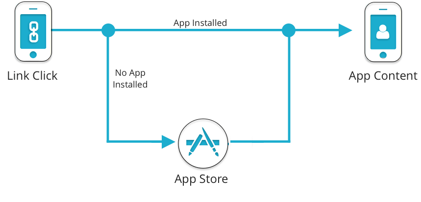 Here’s a visual representation of how directing users with a deep link and without a deep link works: