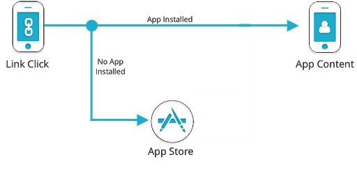 This type of deep linking applies when the mobile user has the app installed. The deep link directly takes them to the relevant content inside the app. But if they don’t have the app installed, it instead takes them to the right app store and asks them to download the app to view the content.
