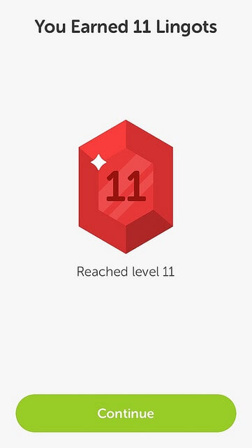 - Gamification elements. In-app notifications are a perfect form to encourage users. This can be done by using notifications similar to gaming achievements, such as badges, stickers, and other level-up awards. For example, Duolingo gives its users the “Lingots” currency for specific achievements in mastering a foreign language.