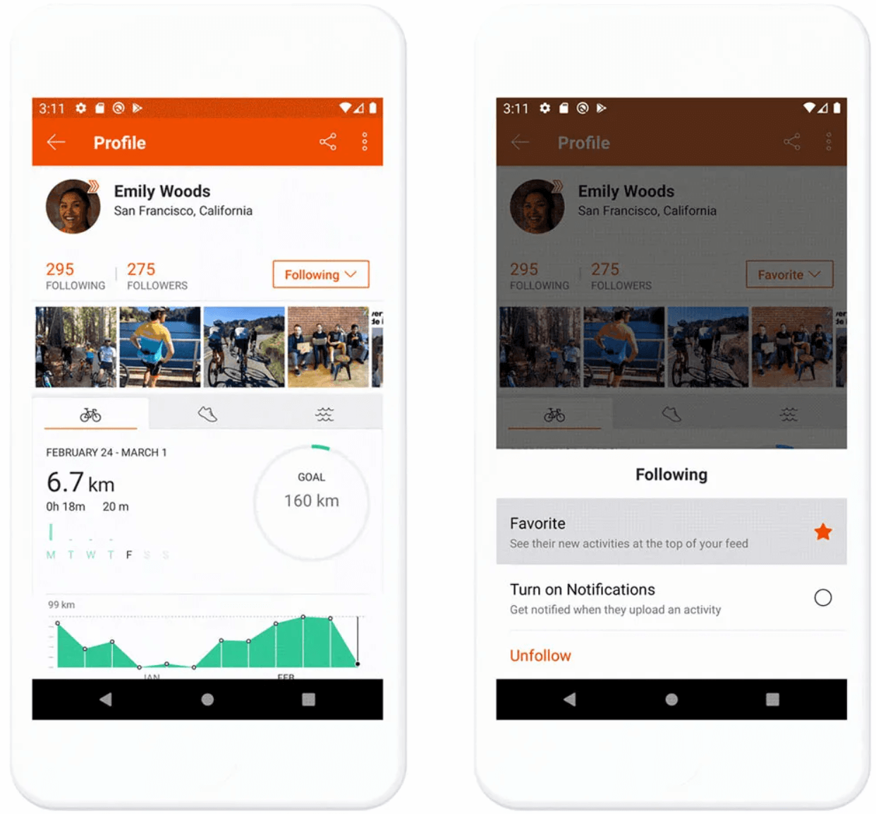 Strava has the activity feed where users share their activities and workouts, comment on them, and cheer each other up. Additionally, you can either join or create your own interest clubs and communities. Not only private users but also brands, gear shops, and teams can also build a community on Strava.